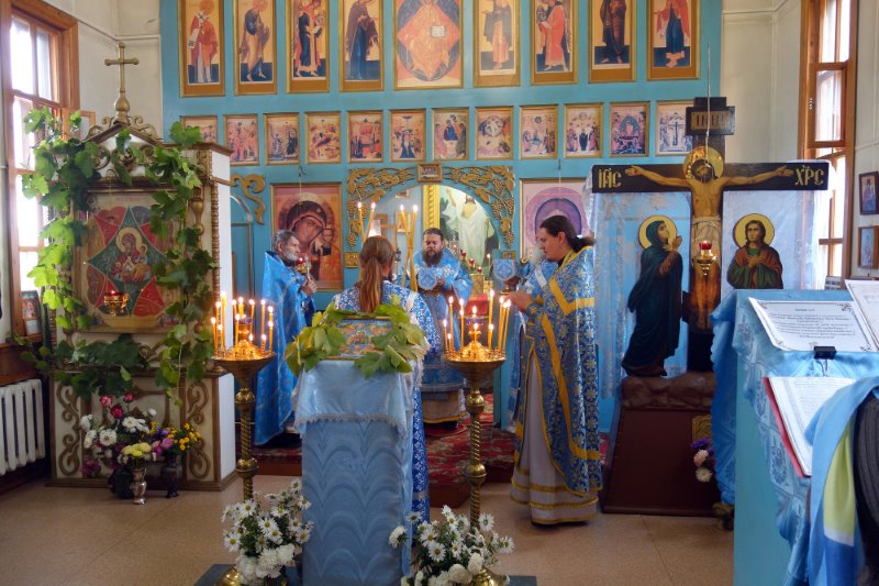 В храме в этот день отметили престольный праздник. За Литургией молились также прихожане Троицкого собора и храма во имя Святителя Николая р. п. Ордынское, было много причастников Святых Христовых Таин.
