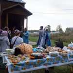 По окончании торжественного богослужения всех прихожан и гостей праздника любезно пригласили на совместную праздничную трапезу, которая состоялась под открытым небом — нарядно накрытые столы уже ждали всех во дворе храма.
