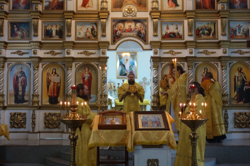19 сентября/воскресение. В день воспоминания Чуда Архистратига Михаила в Хонех и свв. благ. князя Петра и княгини Февронии, Муромских чудотворцев (перех.), Его Преосвященство епископ Филипп совершил Божественную литургию в соборе в честь Живоначальной Троицы р. п. Ордынское, ему сослужил настоятель собора иерей Константин Карамышев.