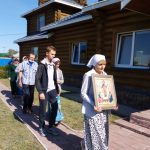 По окончании Литургии в храме был отслужен молебен с акафистом святому великому князю Александру Невскому, а затем прихожане совершили крестный ход вокруг храма со святыми образами в руках.