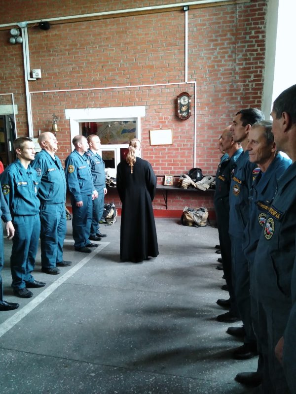 7 сентября секретарь Карасукской епархии иерей Антоний Баранов вместе со спасателями отряда МЧС совершил молебен перед иконой Божией Матери «Неопалимая Купина».