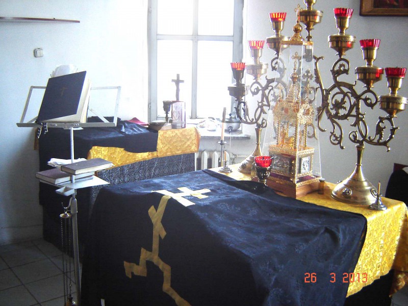 Днём переоблачили алтарь и храм во всё черное, торжественное: ведь начинается Великий пост – время покаяния и очищения души.