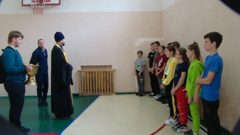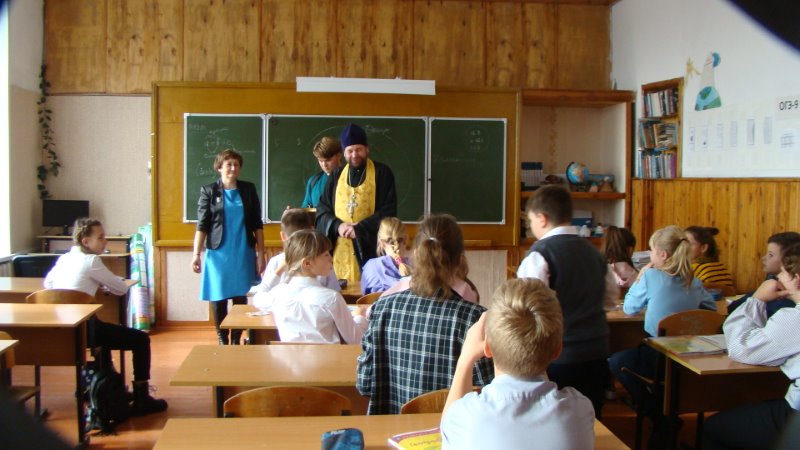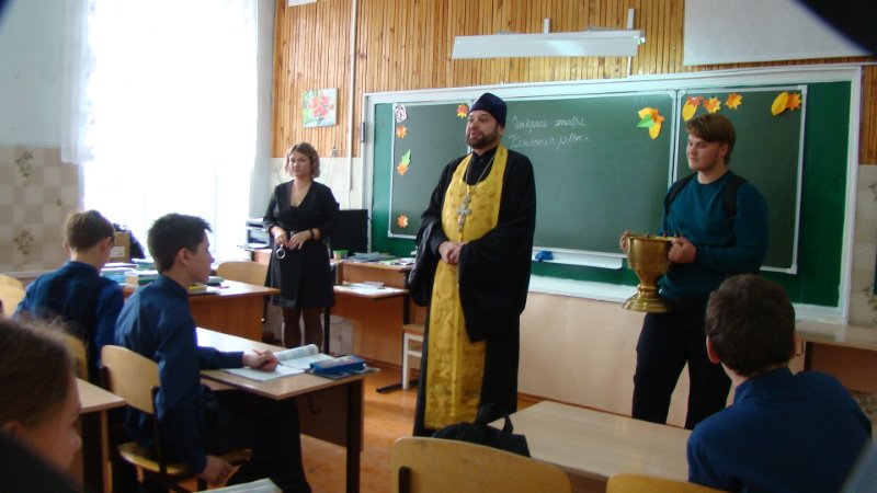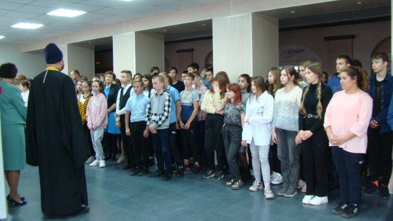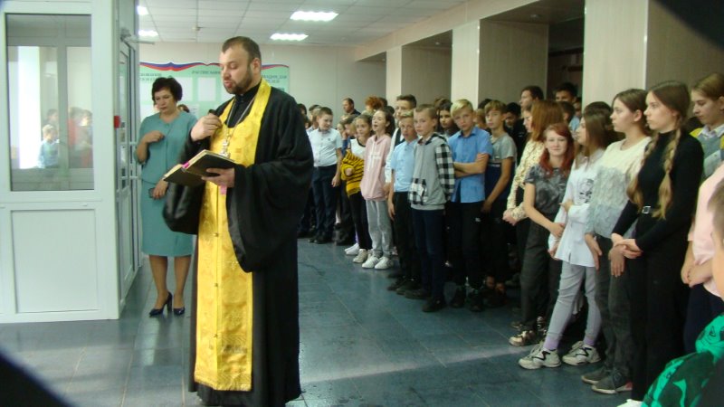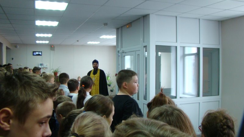 И провел беседу с обучающимися о патриотизме, а также совершил освящение школы.