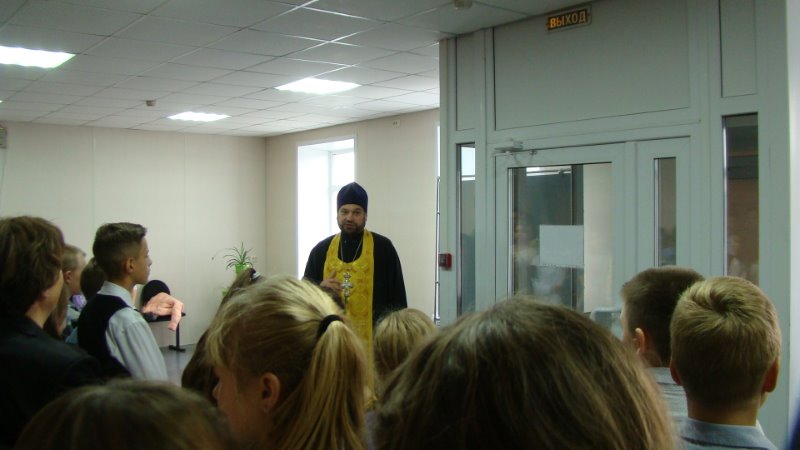4 октября/понедельник. Иеромонах Мелхиседек (Свистелин), благочинный Центрального округа, руководитель Отдела религиозного образования и катехизации Карасукской епархии, по приглашении Инны Валерьевны Олексюк, директора МБОУ СОШ № 148 г. Купино, посетил школу № 148 г. Купино, выпускником которой является он сам.