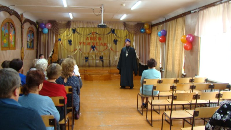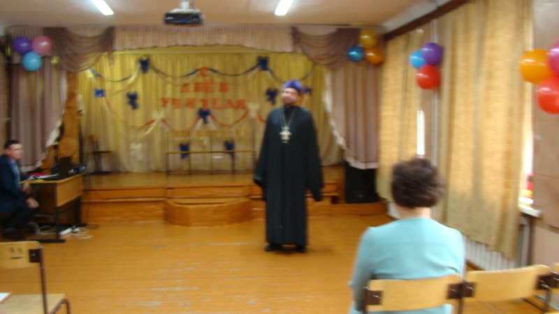 По завершении освящения школы батюшка принял участие в праздничном мероприятии, посвященном Дню учителя.