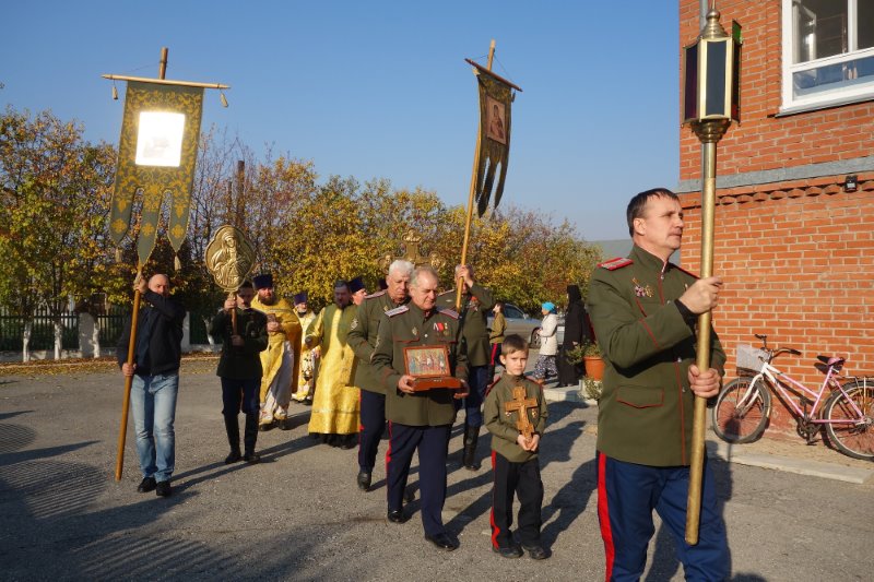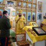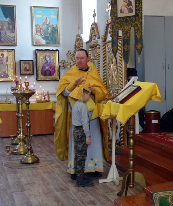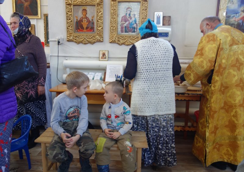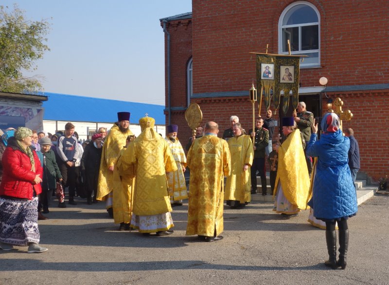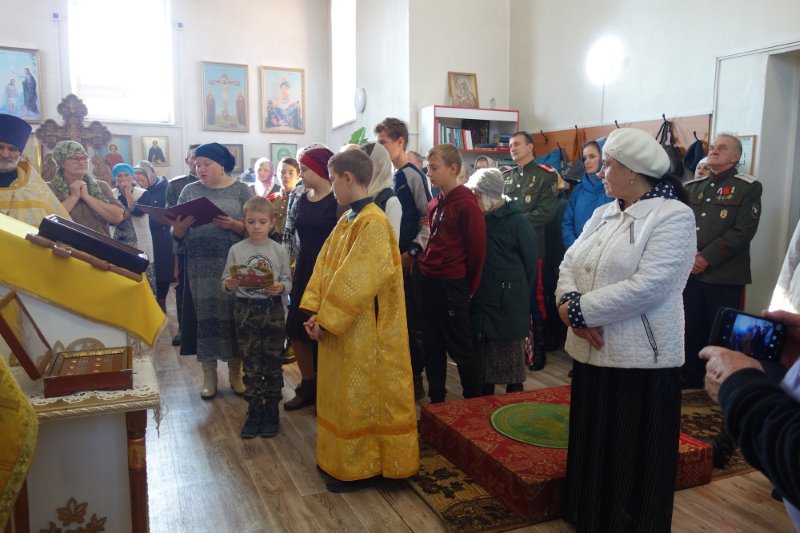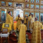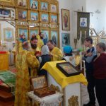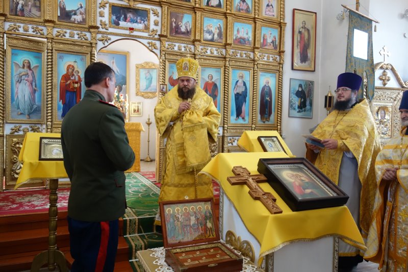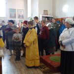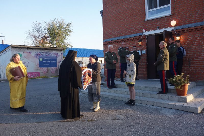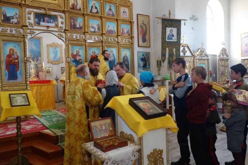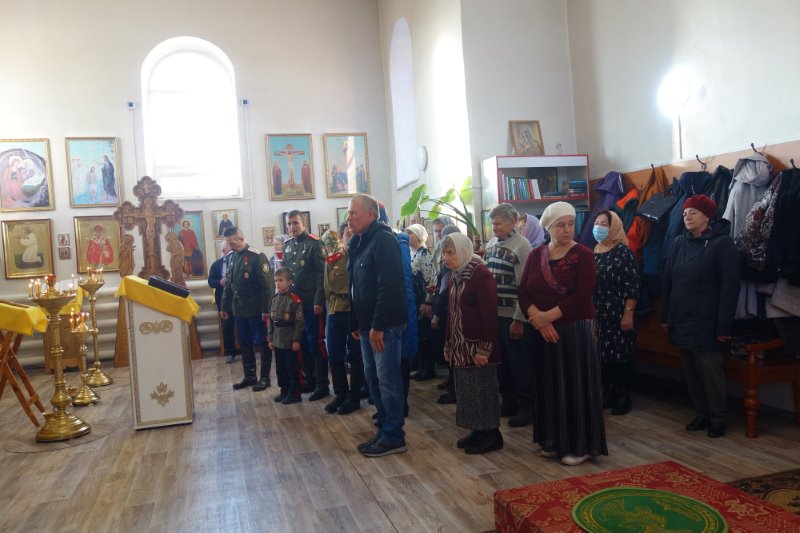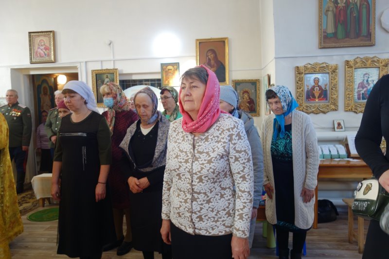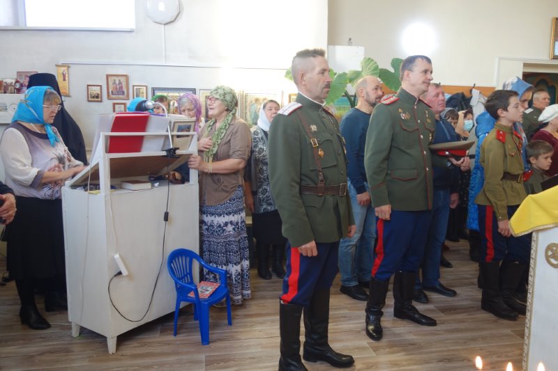 За Литургией молились казаки Каинской станицы «Союза казаков России», гости из Каинской епархии: г. Барабинска и Куйбышева и монахиня Варвара (Перцова), насельница храма в честь Покрова Пресвятой Богородицы с. Верх-Каргата.