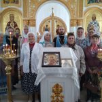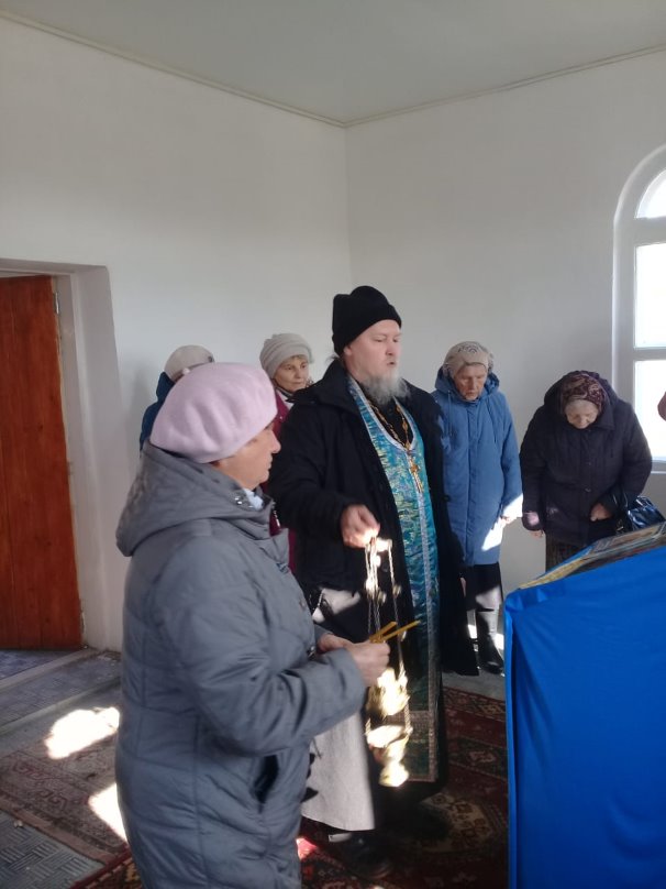 Прихожане Баганского храма вместе с настоятелем иеромонахом Мефодием (Сиваковым)