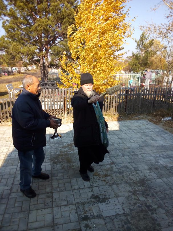 во время ремонта неоднократно приезжали к часовне и служили молебны о благоуспешном завершении ремонта и поминальные литии.