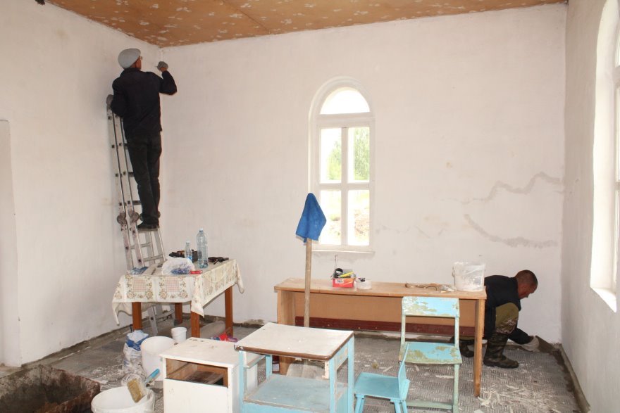 И уже в июне общиной был организован ремонт, в котором жители районного центра по возможности материально и своим трудом принимали участие: штукатурили стены внутри и