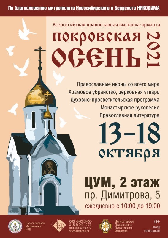 С 13 по 18 октября 2021 года в г. Новосибирске проходит Всероссийская выставка-форум «Покровская осень 2021». Выставка проходит по благословению Митрополита Новосибирского и Бердского Никодима, при поддержке Мэрии г. Новосибирска и Администрации Новосибирской области.