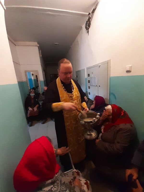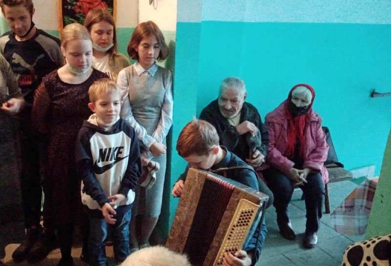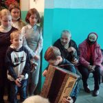 На приходе выработалась добрая традиция совмещать молитву, благотворительную помощь, предоставленную нам братьями из православных сообществ «Неравнодушные сибиряки» и общественными организациями «Милосердие» и «Святость семьи», а также немного радости и теплоты от детских сердец. Дети рассказывали стихотворения, пели песни, играли на баяне.