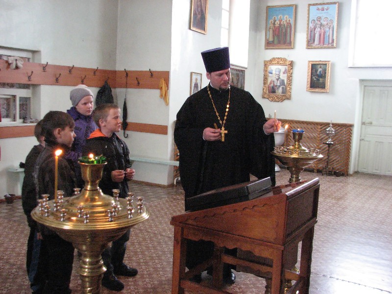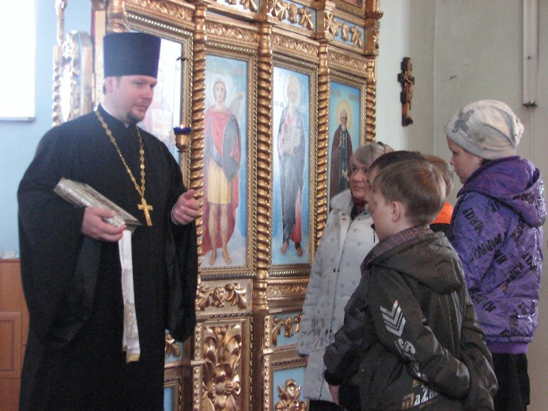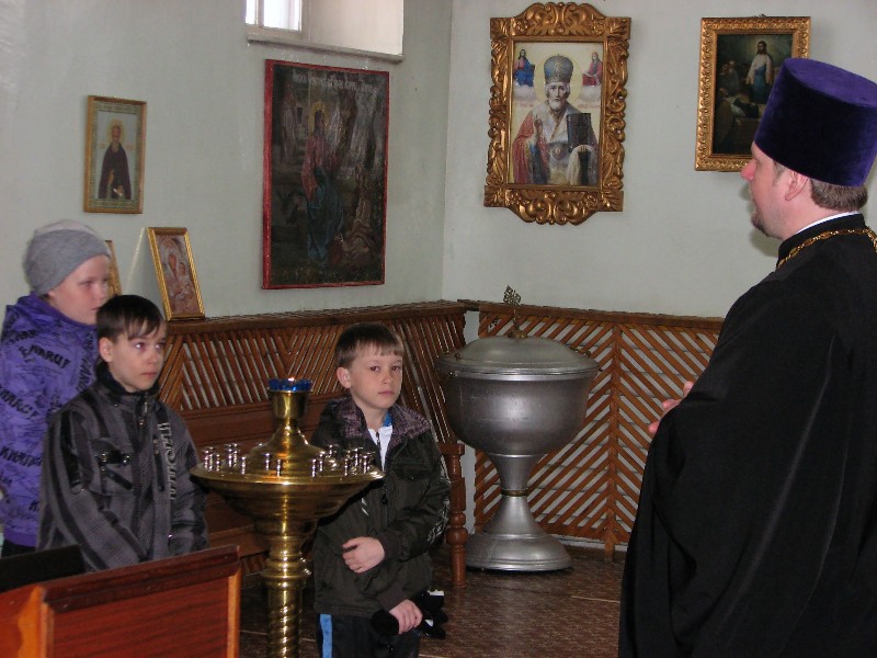 Речь шла об устройстве православного храма, об иконах. Батюшка через открытые Царские Врата показал и Святой Алтарь, что делается только во время богослужения. Не ради праздной детской любопытности эта Святая Святых была показана любознательным ребятишкам. Ведь кто знает, может быть, как раз среди этих школяров стоит будущий священник или епископ!? Или воспоминание о первом посещение Храма Божьего убережет его от злого начинания и сделает его добросовестным человеком и порядочным христианином? Бог весть!