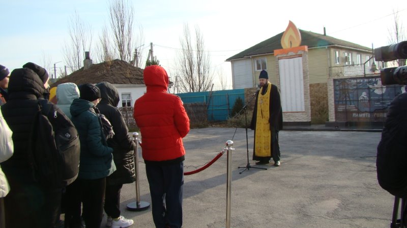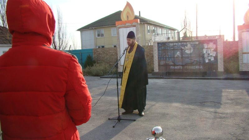Иеромонах Мелхиседек по возложении цветов к памятнику совершил литию по всем пострадавшим в годы гонений землякам.