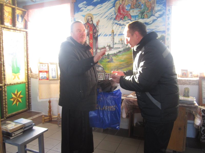 9 ноября руководитель Епархиального отдела по тюремному служению Карасукской епархии иерей Михаил Прут при содействии клириков Каинской епархии: протоиерея Александра Соловьева и протоиерея Николая Тукуреева, а также атамана станицы Каинская «Союза казаков России» Кулаева Василия Васильевича посетил исправительное учреждение, находящееся в с. Табулге Чистоозерного района.