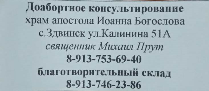 22 ноября, благодаря помощи общественной организации «Святость семьи» г. Новосибирска, иерей Михаил Прут, настоятель храма во имя св. апостола и евангелиста Иоанна Богослова с. Здвинска, и помощник настоятеля по социальной работе Прут Наталия Владимировна передали в родильное отделение Здвинской центральной районной больницы наборы для новорожденных малышей и духовную литературу для беременных женщин (противоабортного содержания).