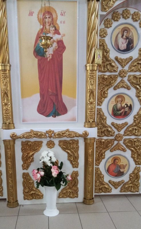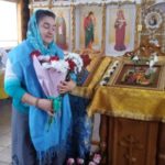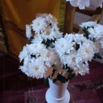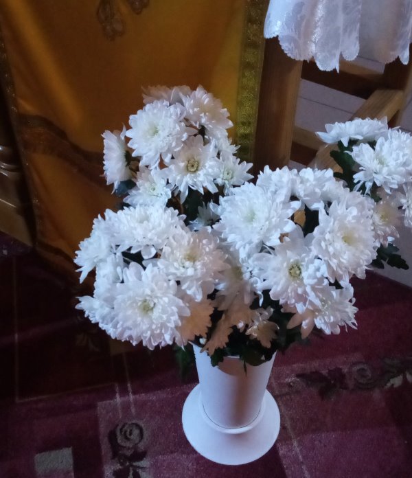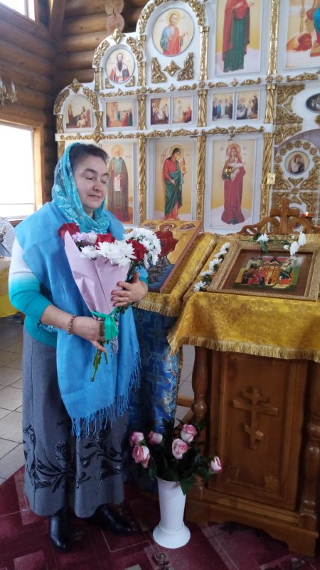 Многие прихожане пришли в этот светлый день с букетами хризантем и роз, чтобы украсить храм.