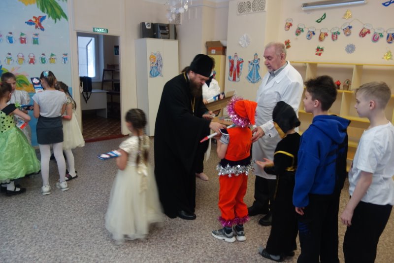 К визиту епископа Филиппа дети подготовили рождественский концерт. После его просмотра Владыка поблагодарил детей за их прекрасный концерт и рассказал маленьким пациентам об истории праздника Рождества Христова. Каждому ребенку архиерей подарил икону и сладкий подарок.