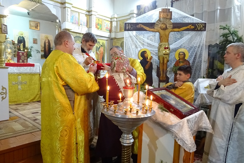 По благословению Святейшего Патриарха Московского и всея Руси Кирилла, богослужение проходило с открытыми царскими вратами по «Отче наш…».