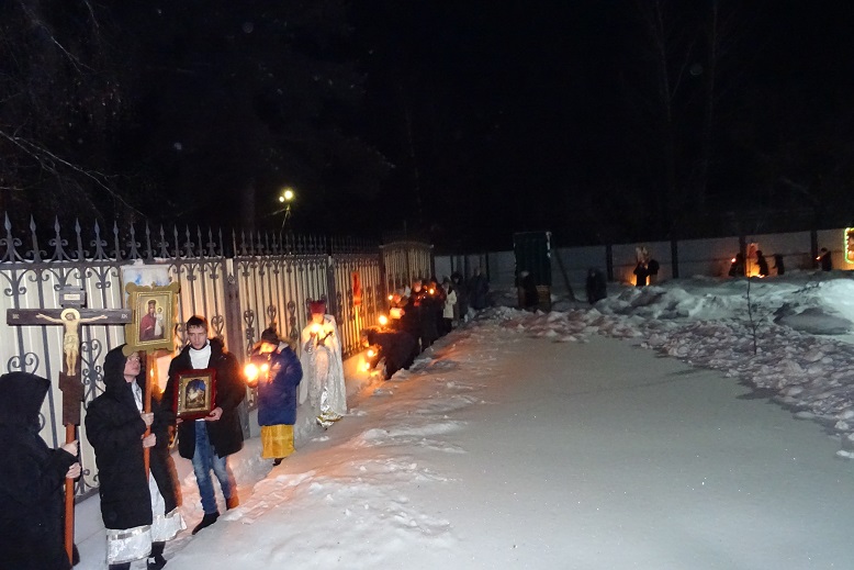 После Божественной литургии состоялся крестный ход вокруг храма и праздничный завтрак.