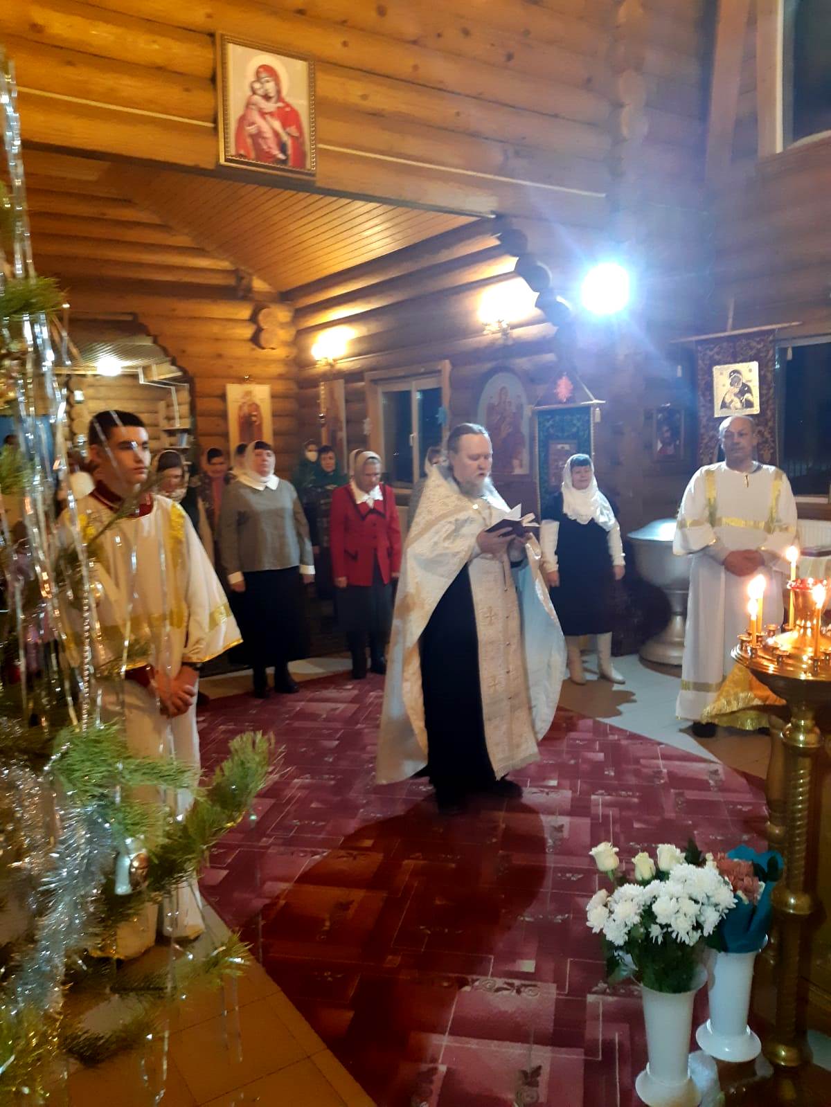 В эту святую ночь с наступившим Рождеством Христовым настоятель храма поздравил всех присутствующих на Литургии, пожелал радости, бодрости духа, здоровья душевного и телесного, веры и надежды на лучшее! Он призвал всех присутствующих более усердно молиться и посещать постоянно храм Божий, ведь в храме невидимо присутствуют и молятся вместе с нами множество Ангелов и святых угодников Божиих.