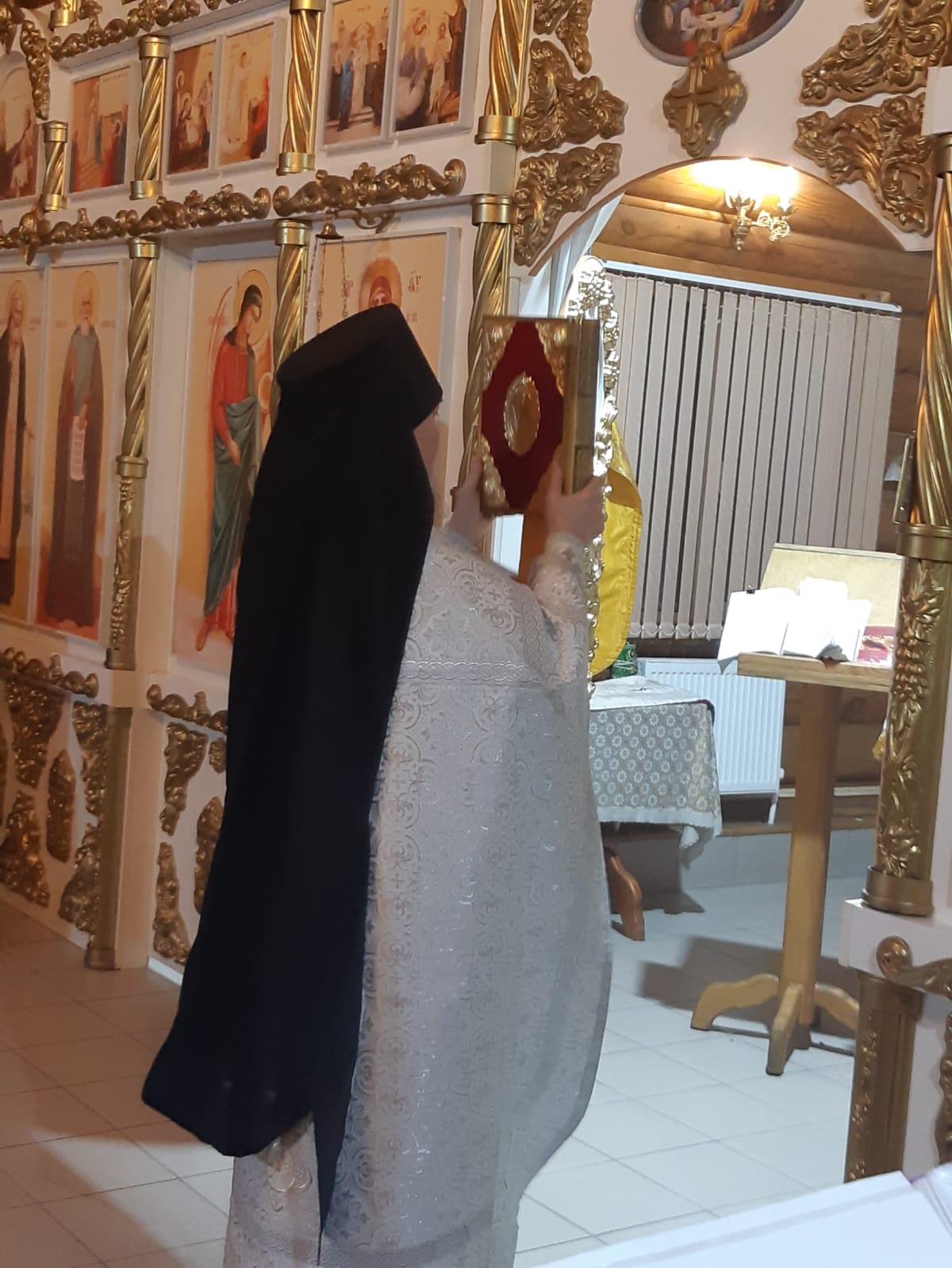 Перед причастием Святых Христовых Таин иеромонах Мефодий (Сиваков) огласил Рождественское послание Святейшего Патриарха Московского и всея Руси Кирилла