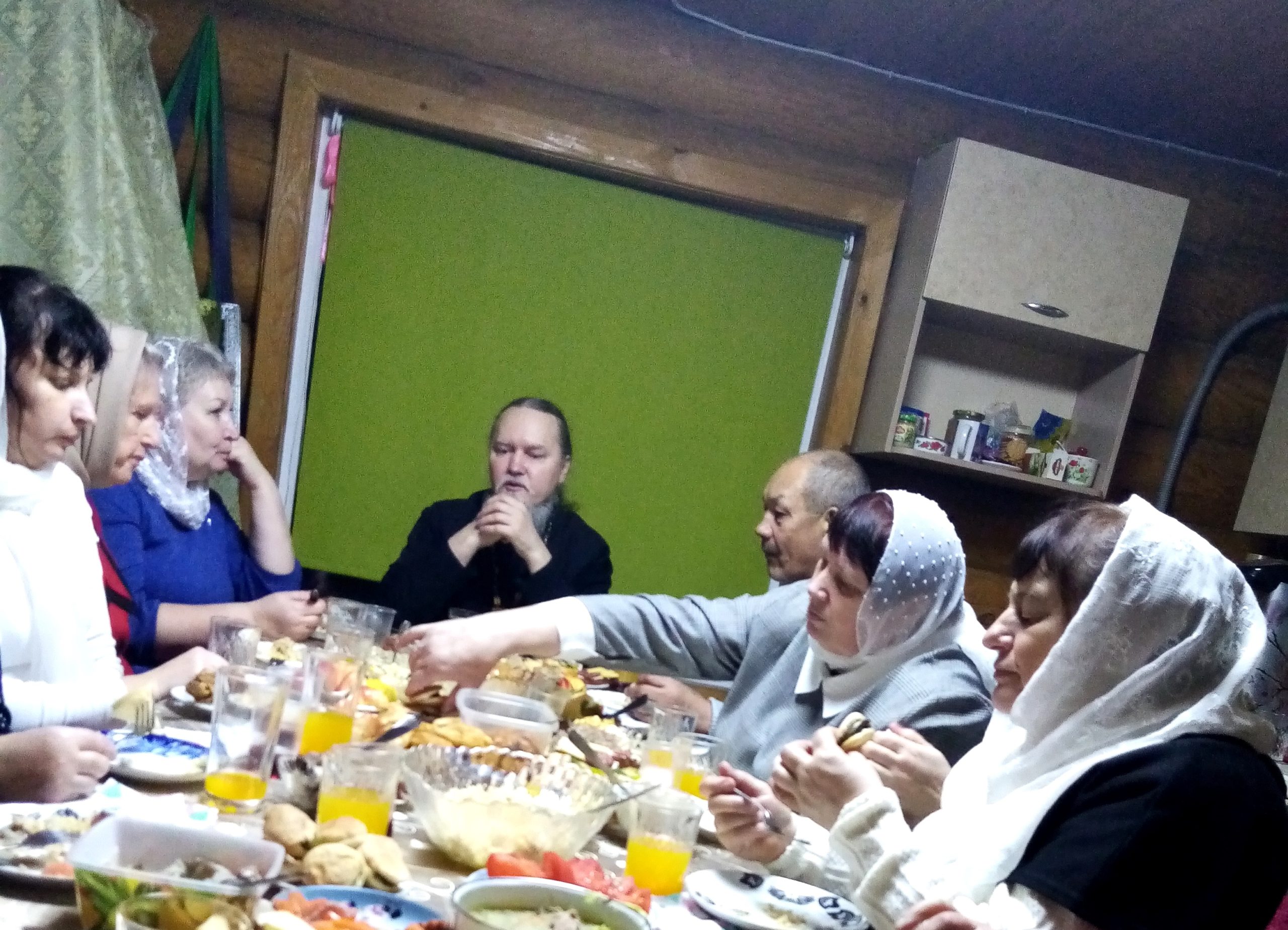 Прихожане подготовили рождественский подарок настоятелю храма. После окончания богослужения состоялась общая праздничная трапеза.