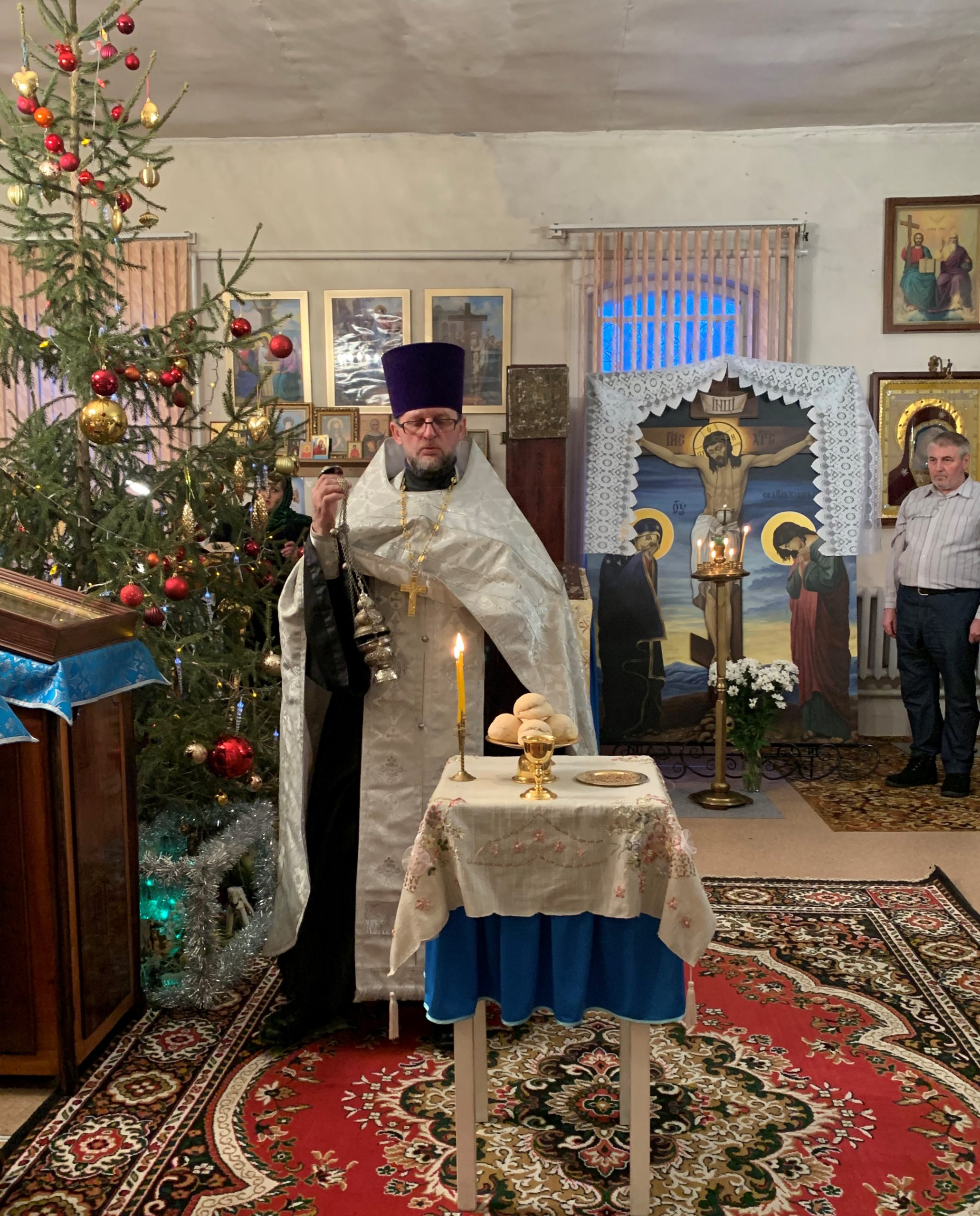 Вечером 6 января, в канун Рождества Христова, протоиерей Евгений Зверев совершил праздничное всенощное бдение с освящением хлебов в храме в честь Успения Пресвятой Богородицы с. Половинного Краснозерского района.