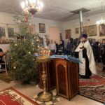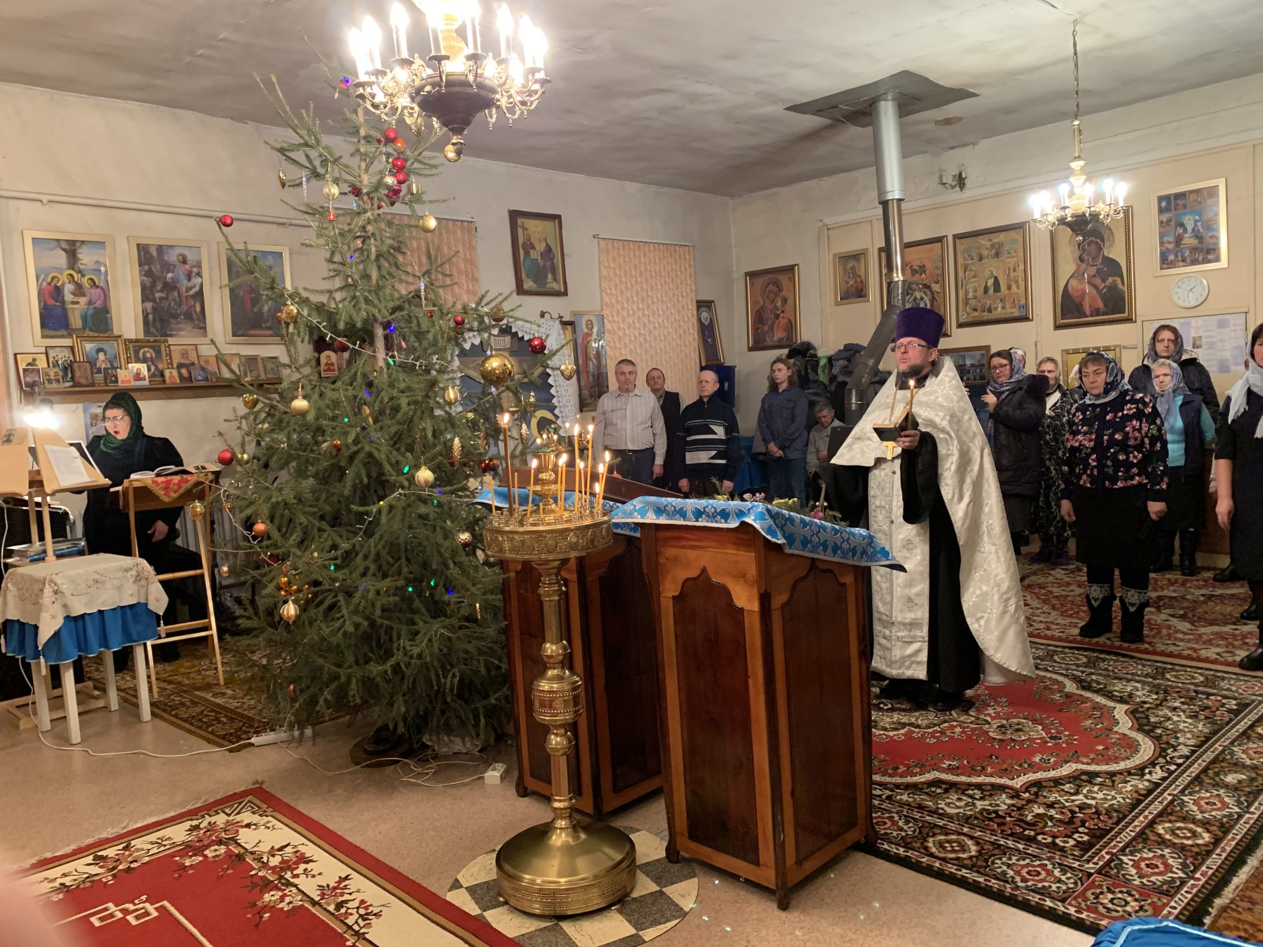 После славления перед иконой Рождества Христова хор храма во главе с его регентом, матушкой Ларисой Зверевой, пропел тропарь и кондак праздника Рождества Христова и рождественские колядки.