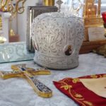 И попросил прихожан собора не забывать подавать записки о упокоении душ усопших родных. Ибо после причащения Святых Христовых Таин за Литургией частицы просфоры, вынутые в память о них, погружаются в Потир, где Кровью Иисуса Христа омываются от грехов.