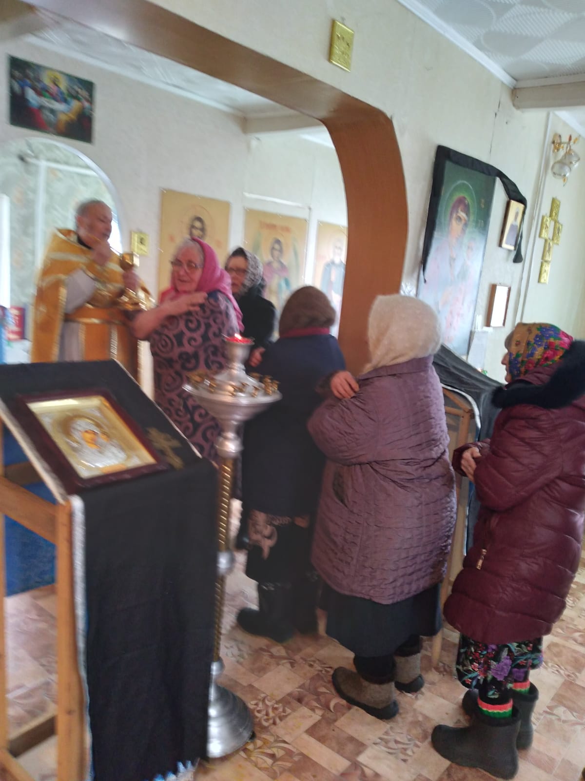 18 февраля, пока еще не испортилась дорога, было решено отслужить Божественную литургию и панихиду в храме в честь Казанской иконы Божией Матери с. Комарье Доволенского района.
