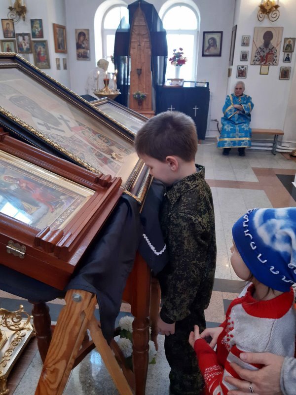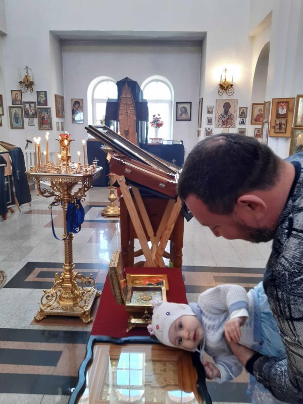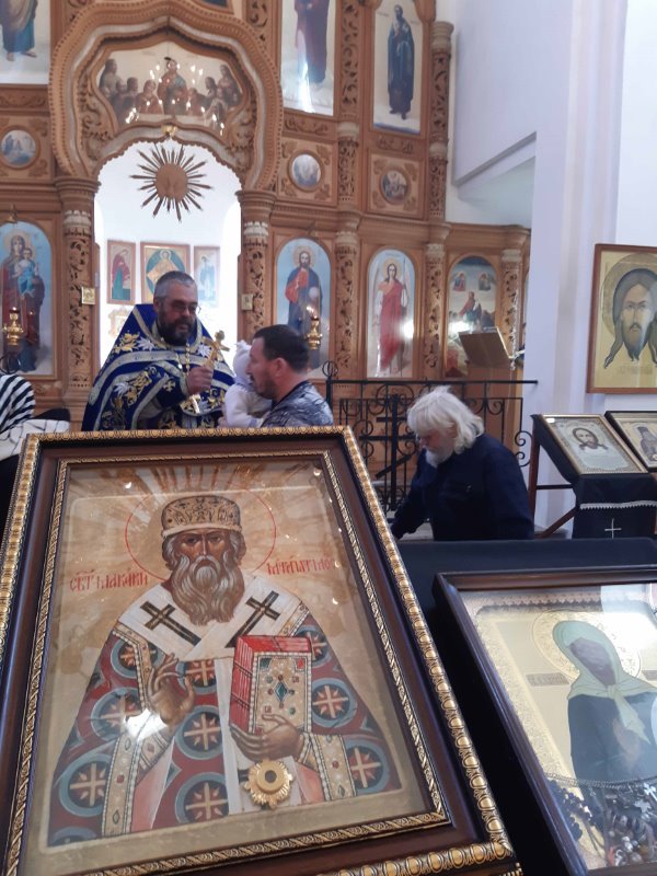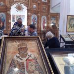 Святыни крестного хода: икона святителя Макария, митрополита Алтайского и Московского, с частицей мощей и ковчег-мощевик.