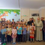 Дети с нетерпением и радостью встретили архипастыря у входных дверей и, обменявшись Пасхальным приветствием, провели его в игровую группу, где состоялся пасхальный концерт.