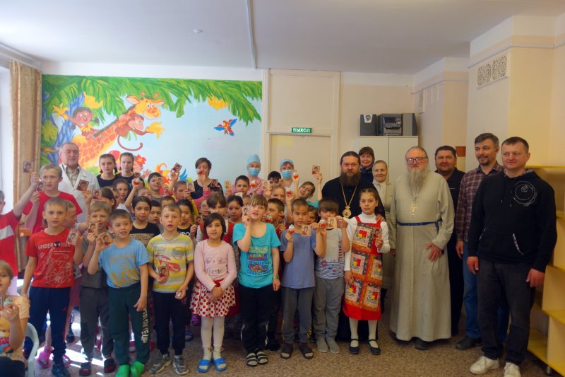 По его окончании владыка Филипп поздравил маленьких пациентов и медицинских работников с праздником Светлого Христова Воскресения, рассказал им об этом светозарном празднике и пожелал детям скорейшего выздоровления и всегда помнить о Господе, обращаться к Нему с молитвой и Господь услышит их детские прошения и исполнит их!