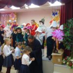 Они своими силами готовят Пасхальный концерт, после чего Владыка читает с ними молитву «Отче наш», окропляет их святой водой и дарит сладкие подарки и иконы.