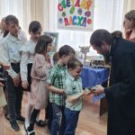 Затем Владыка вместе с протоиереем Александром Гришином вручил детям сладкие пасхальные подарки и иконочки.