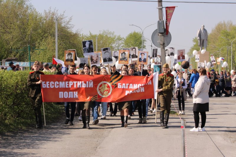 На площади перед железнодорожным вокзалом села Багана утром собрались люди, собирались не просто так, а чтобы принять участие в традиционном шествии «Бессмертного полка», который проводится спустя 2 года. У каждого из присутствующих в руках штендер с портретом родственника — участника Великой Отечественной войны 1941-1945 годов. Люди общались с друг другом, вспоминали героев своей семьи, а также пели песни военных лет вместе с «фронтовой бригадой», состоящей из работников районного Дома культуры и Баганского Дома детского творчества.