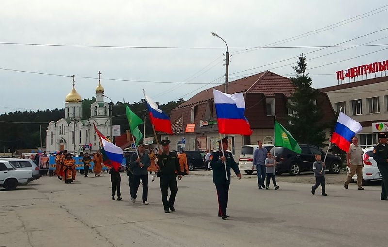 По завершении праздничного богослужения начался крестный ход по центральной улице рабочего поселка от собора в честь Живоначальной Троицы до храма во имя Святителя Николая, в нем приняли участие духовенство Карасукской епархии, казачество, а также ученики местных школ районного центра и его жители.