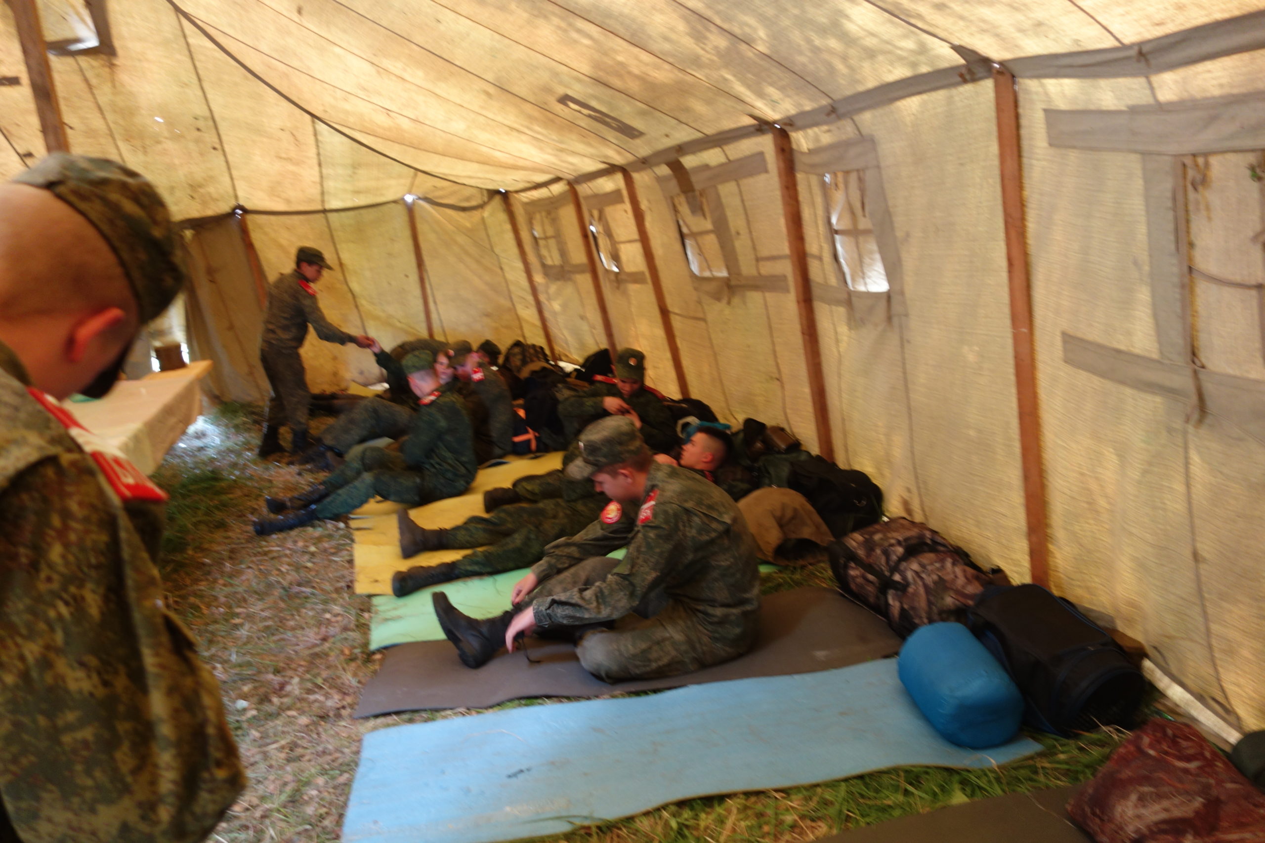 Это полевой палаточный лагерь, где собрались воспитанники православного военно-патриотического объединения казачьей молодежи «Гвардия» и курсанты Бердского казачьего кадетского корпуса имени героя России Олега Куянова — всего 30 человек.