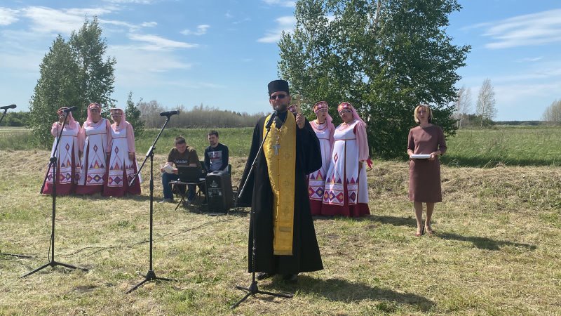 Накануне празднования Дня Святой Троицы и Дня России протоиерей Евгений Зверев, настоятель Успенского храма с. Половинного, посетил торжественное мероприятие по увековечиванию памяти исчезнувшего в Краснозерском районе села Белая дубрава, основанного в 1911 г.
