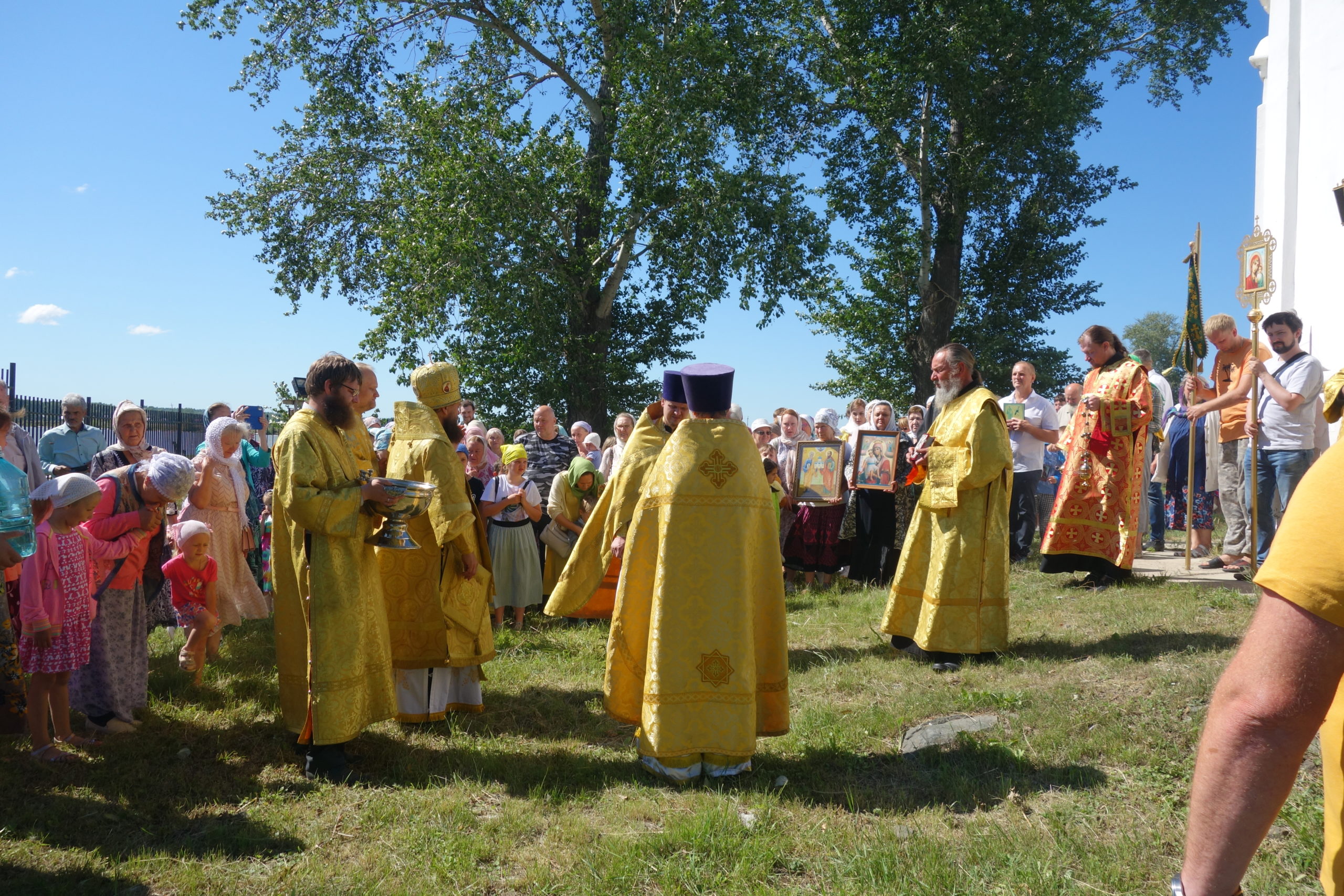 В этот день в храме — престольный праздник. По этому случаю состоялся традиционный крестный ход вокруг храма, который с его северной стороны прошел по берегу Обского водохранилища, так близко расположено к нему здание храма, полностью отражающееся в его водах. Прошел по мягкой скошенной траве; молитвенное шествие возглавил епископ Филипп.