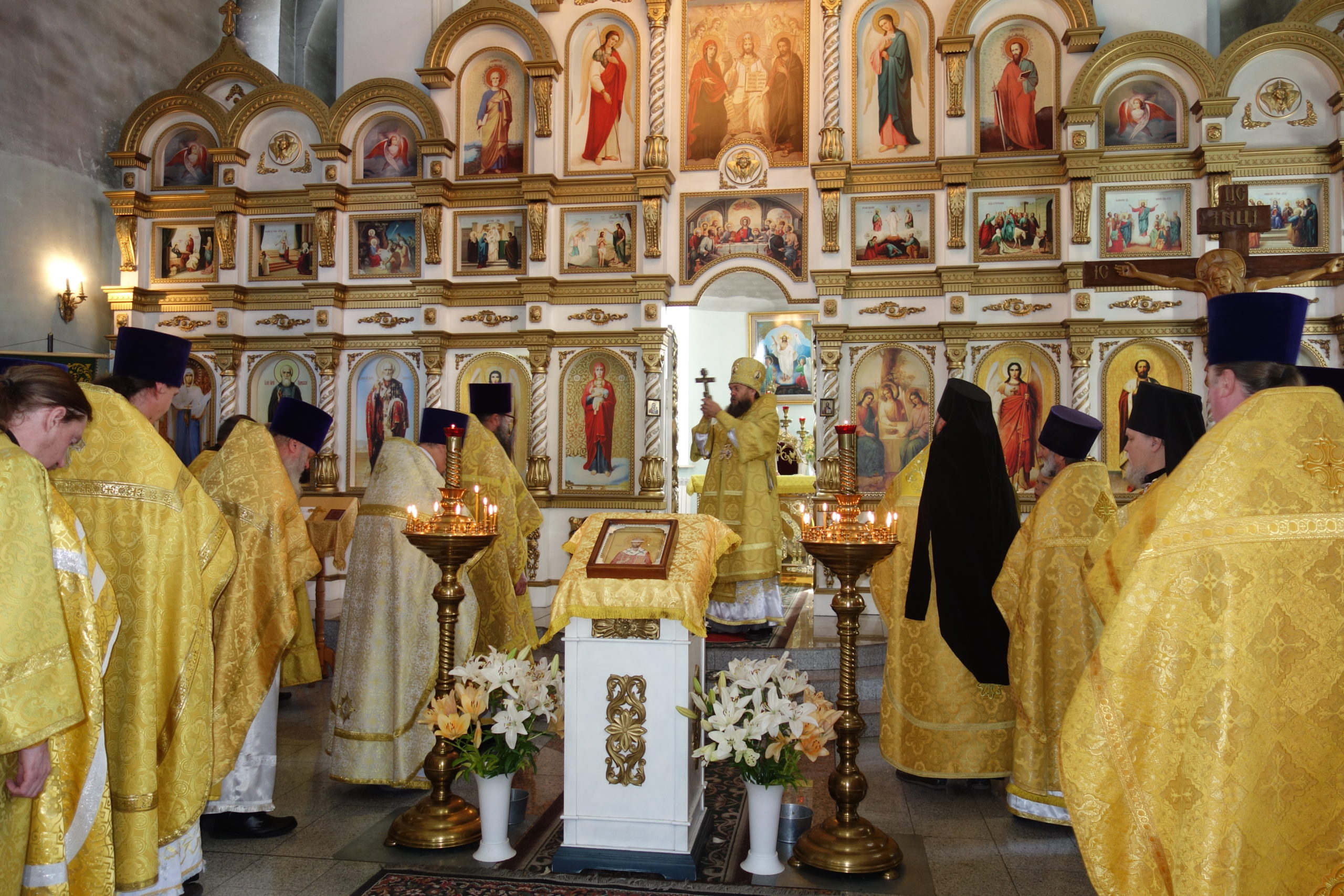 За Литургией молились прихожане не только Троицкого собора, но и 2-х других храмов р. п. Ордынское: во имя Святителя Николая и в честь иконы Божией Матери, именуемой «Неопалимая Купина», многие из которых причастились Святых Христовых Таин. По заамвонной молитве епископ Филипп совершил славление праздника перед иконой свт. Филиппа, митрополита Московского.