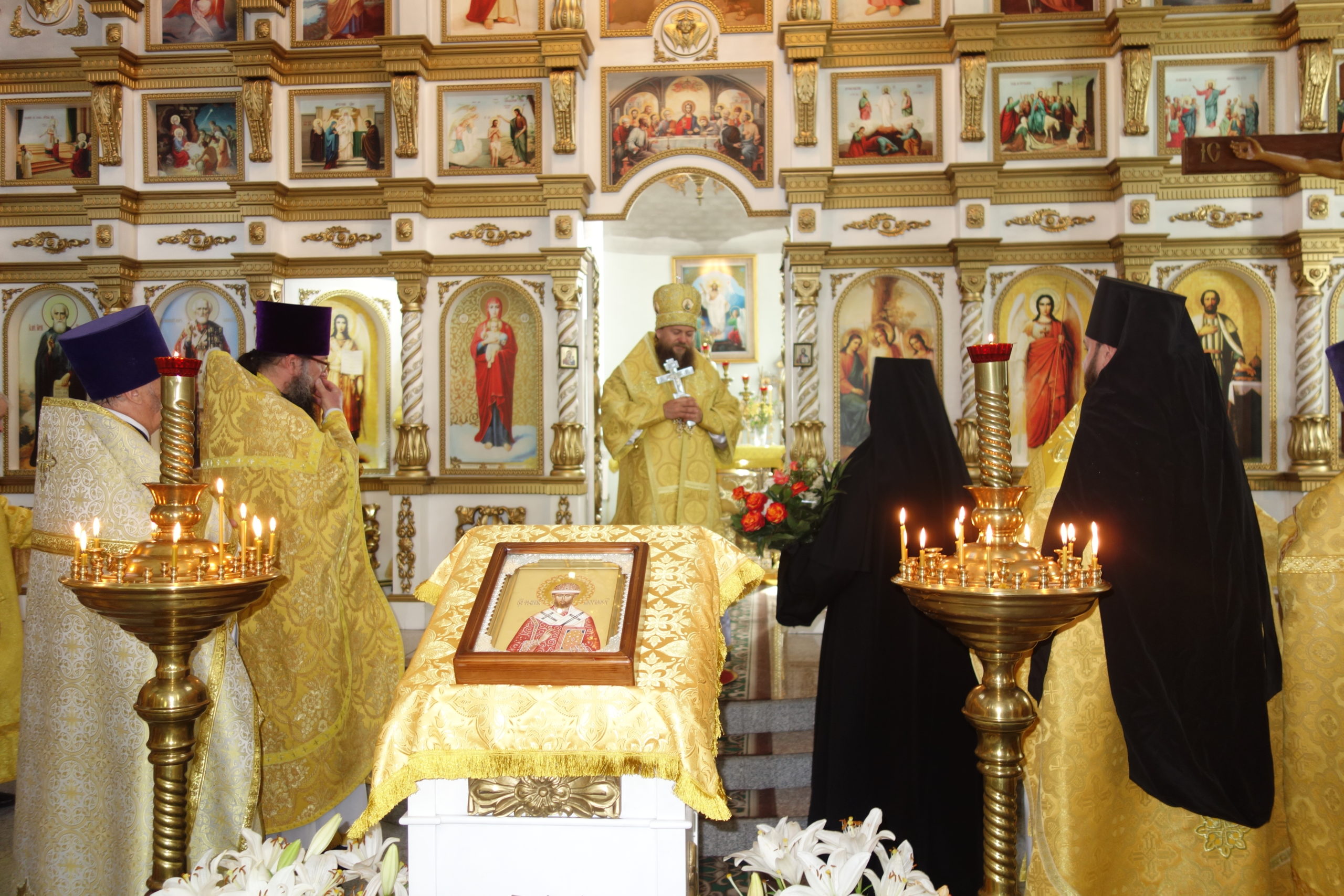 По окончании проповеди иеромонах Мелхиседек Свистелин, благочинный Центрального округа Карасукской епархии, от имени всего духовенства поздравил епископа Филиппа с Днем его Небесного Покровителя и поблагодарил дорогого Владыку за его молитвы и труды на благо Святой Церкви, пожелал ему духовных и телесных сил, благодатной помощи Божией и покровительства Царицы Небесной в его отеческой заботе о своей пастве и об укреплении в сердцах людей православной веры и христианской любви. И преподнес ему подарок от духовенства епархии: Панагию Портаитиссу (образ Богоматери «Иверская» — копию с чудотворной Иверской иконы Божией Матери, особо чтимую в Новосибирской митрополии), Крест и букет белых роз.