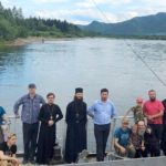 Восьмой день миссионерского съезда ознаменовался Таинством Крещения во Владимировке. Таинство приняли 3 человека: мать семейства Татиана, ее сын Кирилл и ее 15-летняя дочь Домна. Характерно, что мать Татианы в январе прошлого года молилась, чтобы Господь послал в поселок людей, которые бы покрестили ее внуков, т. к. в этом поселке нет храма. И Господь услышал ее молитвы: в поселок пришли миссионеры и встретили эту семью. И в этот день ее дочь и внуки стали христианами. Погода в поселке стояла пасмурная, было довольно прохладно. Таинство Крещения с погружением в воды реки (рукав Енисея) совершил иеромонах Амвросий (Ситало) настоятель храма во имя Святого Георгия на острове Гренада. Батюшка и крещаемые с радостью во Христе вошли в эти холодные воды. И с трехкратным возгласом священника: «Во имя Отца и Сына и Святого Духа» все трое приняли Таинство Святого Крещения: родились во Христе как некогда древние христиане во времена князя Владимира, Просветителя и Крестителя Руси. Чувствовалась радость всех присутствующих миссионеров. С Божией помощью миссия удалась: Господь принял веру новообращенных!