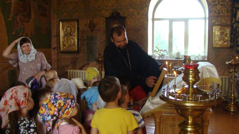 11 августа иеромонах Мелхиседек (Свистелин), руководитель Отдела религиозного образования и катехизации Карасукской епархии, совместно с воспитанниками детского сада «Солнышко» г. Купино посетил Купинский районный музейно-мемориальный комплекс, где для воспитанников детского сада прошла экскурсия в рамках конкурса малых грантов «Мы вместе, а это значит…» на тему: «Знакомство с красавицей матрешкой» (русской, татарской, башкирской, украинской). Иеромонах Мелхиседек рассказал присутствующим о семейных православных традициях.
