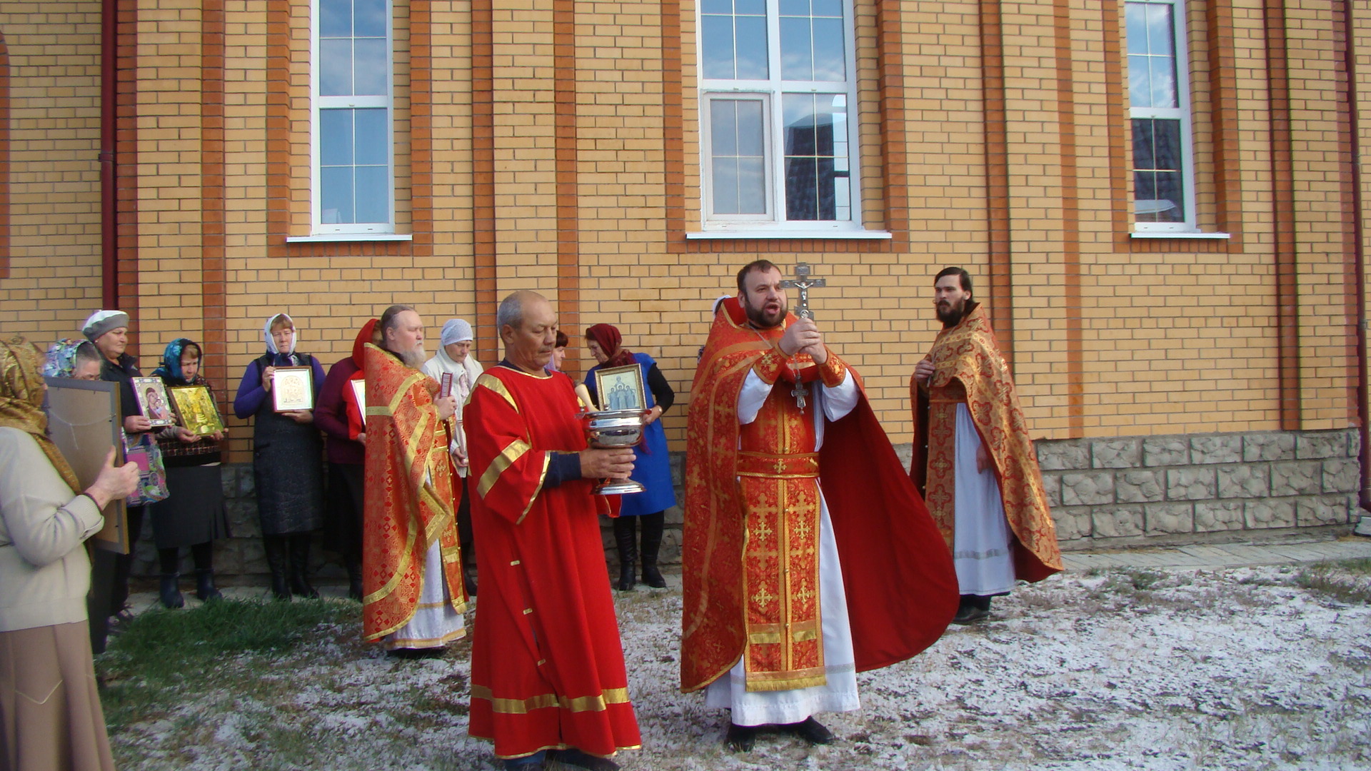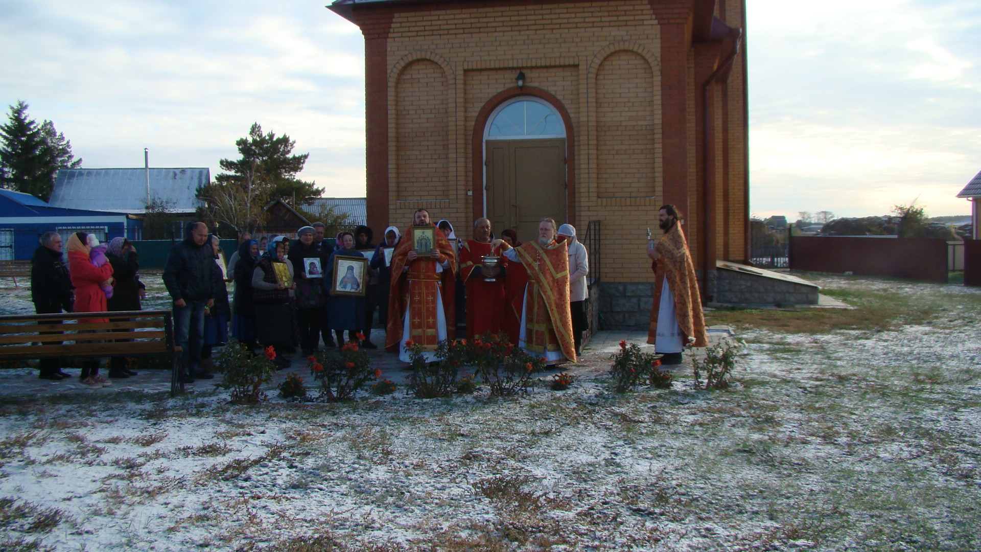 По окончании Литургии состоялся крестный ход вокруг храма. Затем иеромонах Мелхиседек обратился с напутственным словом и поздравлением к прихожанам.