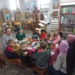 И вот вчера мы провели третье заседание семейной краеведческой студии «Сибирские сказки, фольклор и народные традиции», который прошел в форме народного праздника «Покровские посиделки». В рамках изучения этой темы детско-взрослая познавательно-краеведческая деятельность была направлена на знакомство с сибирскими сказками, фольклором, народными традициями. Прошла экскурсия в храме, где дети беседовали с батюшкой о народных традициях.
