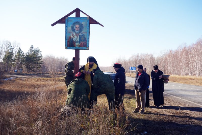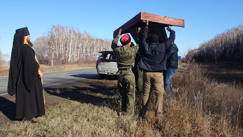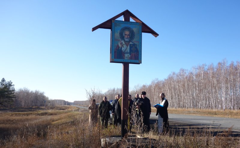 2 ноября на границе Карасукского и Краснозерного районов Карасукской епархии был установлен и освящен Поклонный крест с иконой.