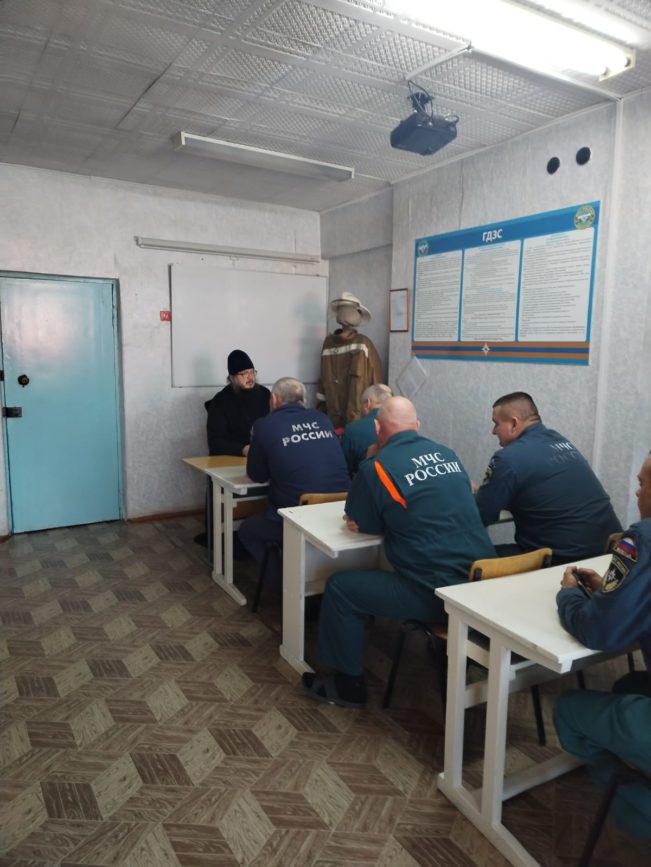 1 ноября состоялась духовная беседа протоиерея Андрея Гусева с личным составом Доволенского МЧС. Обсуждались насущные духовные проблемы.