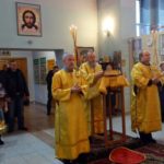 По окончании Литургии Владыка поздравил всех с воскресным днем и напомнил, что сегодня Святая Церковь прославляет чудотворную икону Божией Матери «Взыграние младенца», отметив, что это образ Материнской любви Богородицы.