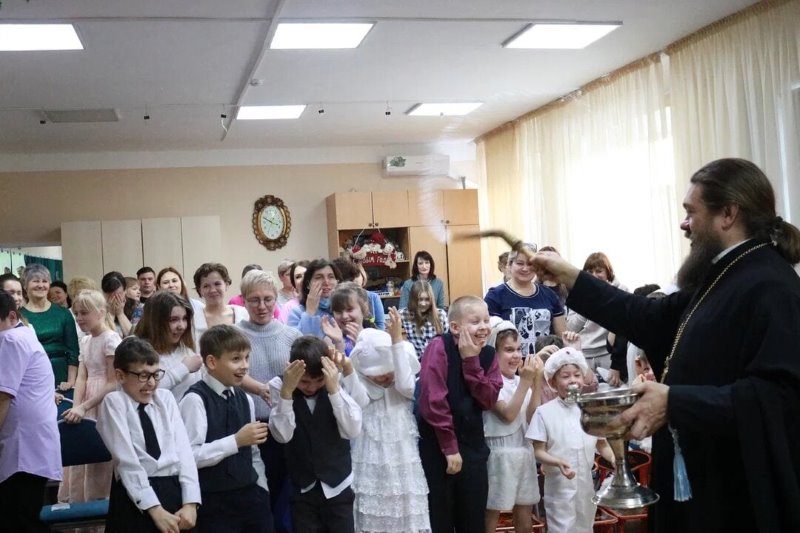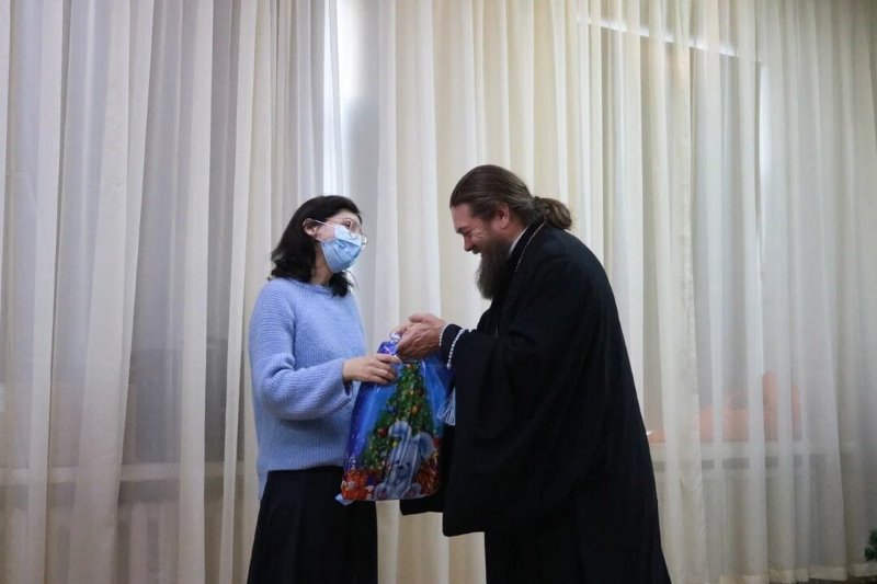 Владыка окропил всех святой водой, пожелал воспитанникам детского центра крепкого здоровья, сердечной радости и душевного тепла, а воспитателям — терпения, любви и заботы в деле воспитания детей и вручил всем детям на память сладкие рождественские подарки и иконочки.